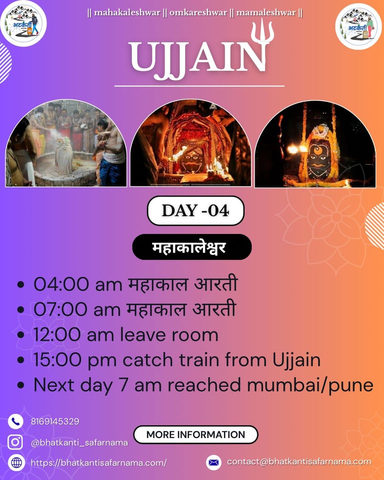 A spiritually enriching budget group tour to Ujjain, including Mahakal Darshan, local sightseeing, and guided experiences.